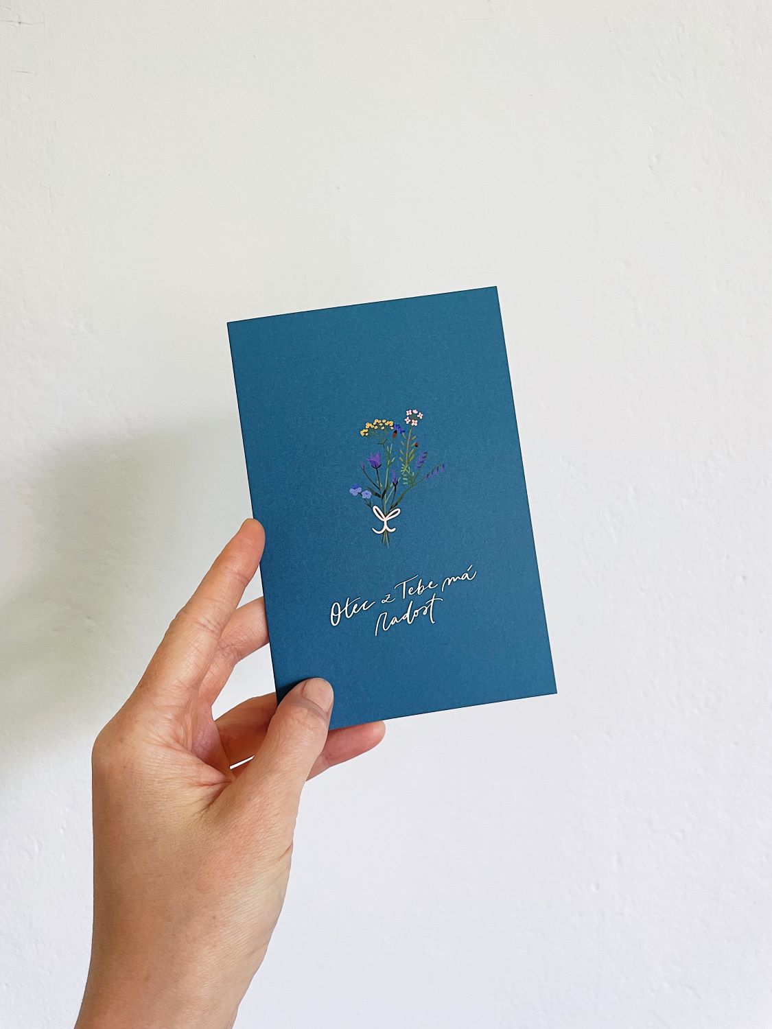 Křesťanské povzbudivé přání „Bůh má z Tebe radost“ spojuje krásný design s vírou. Využitelné k narozeninám i jen tak, pro povzbuzení ♥