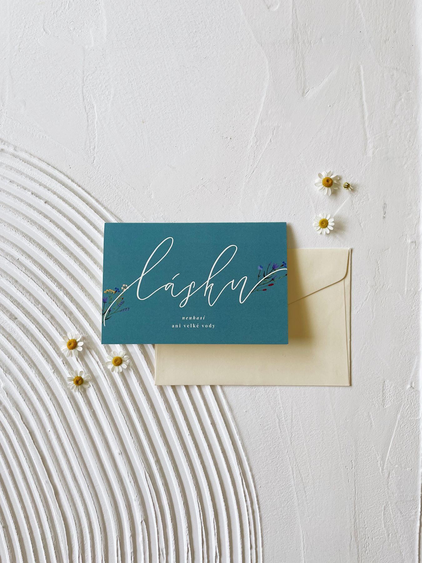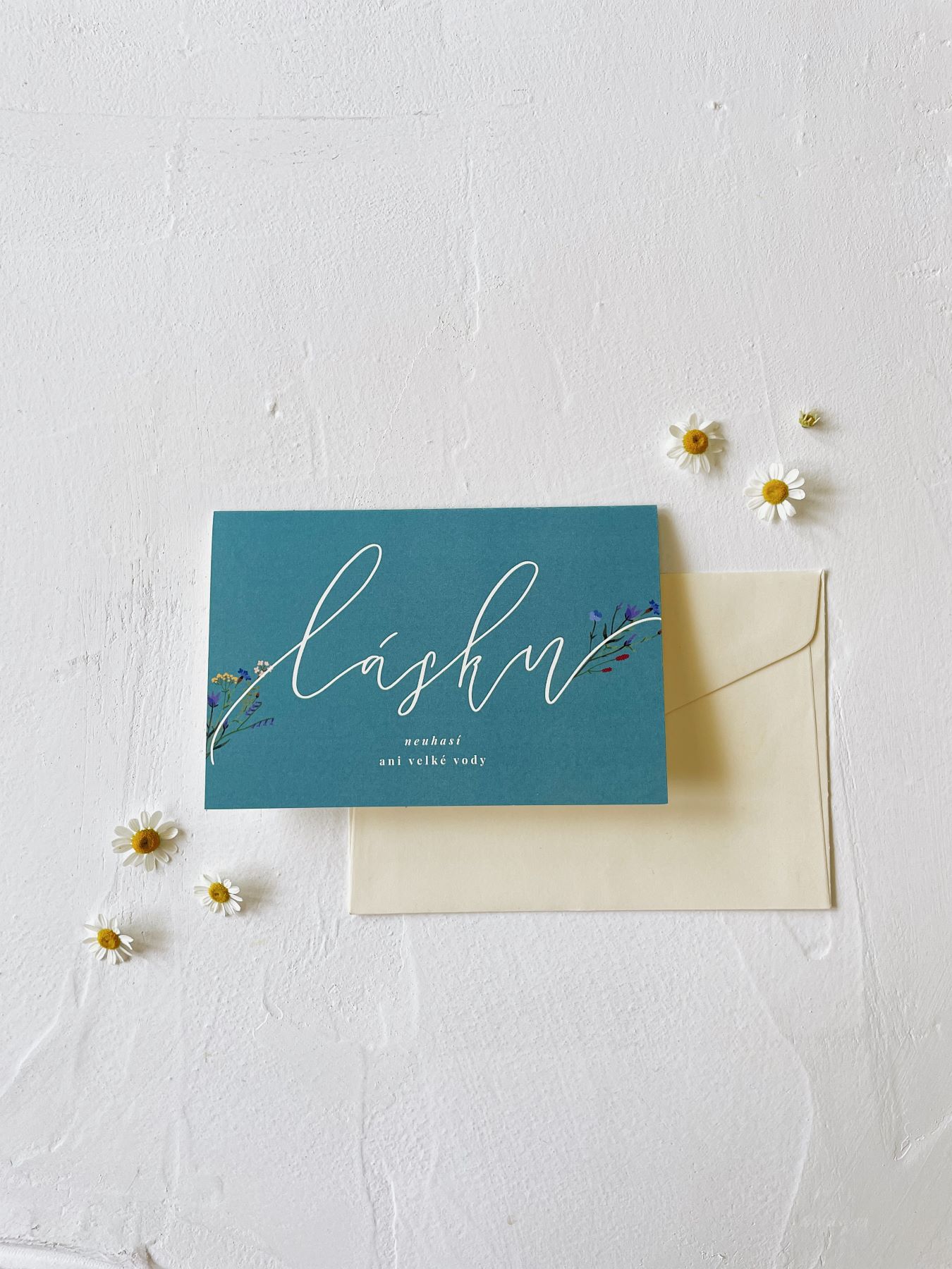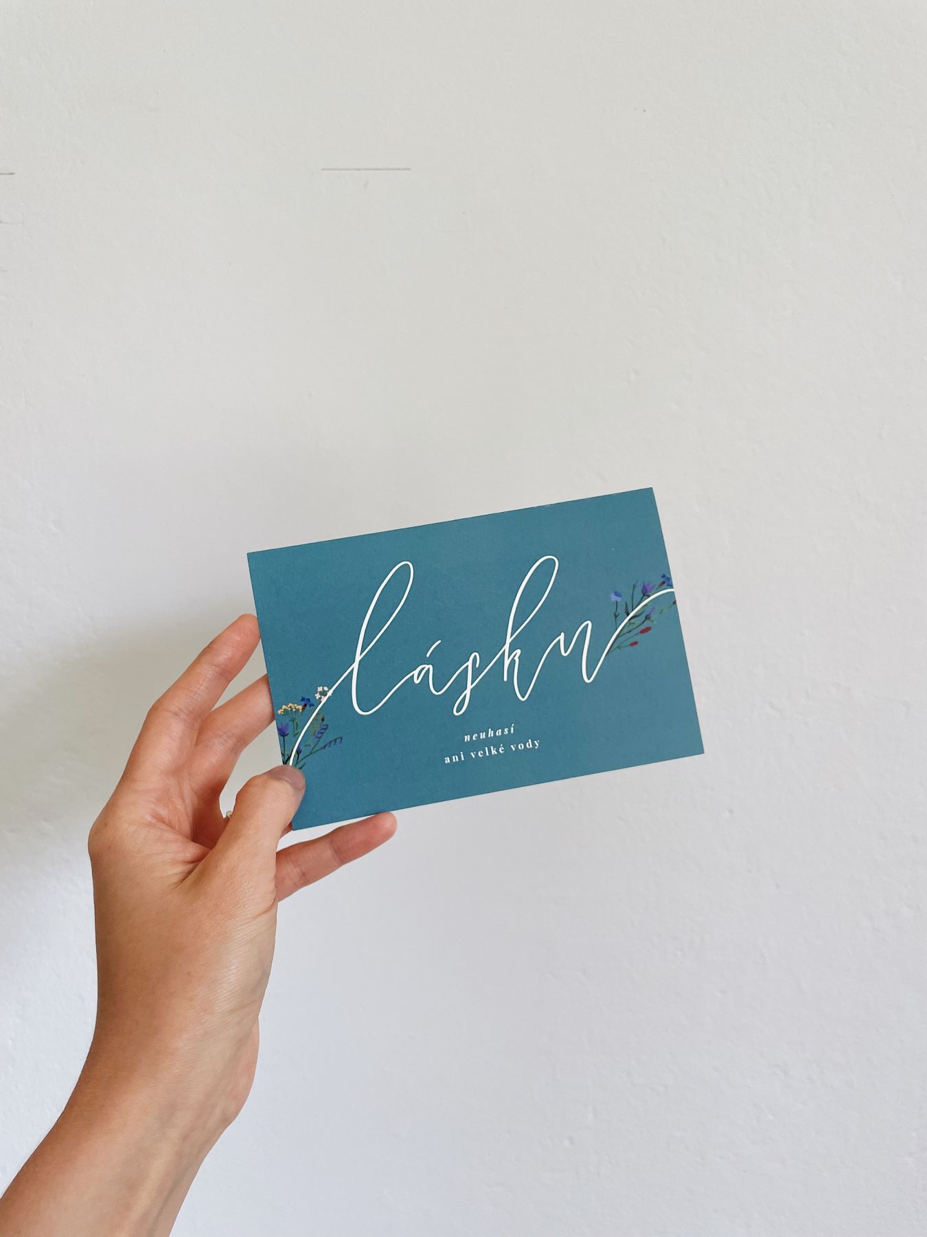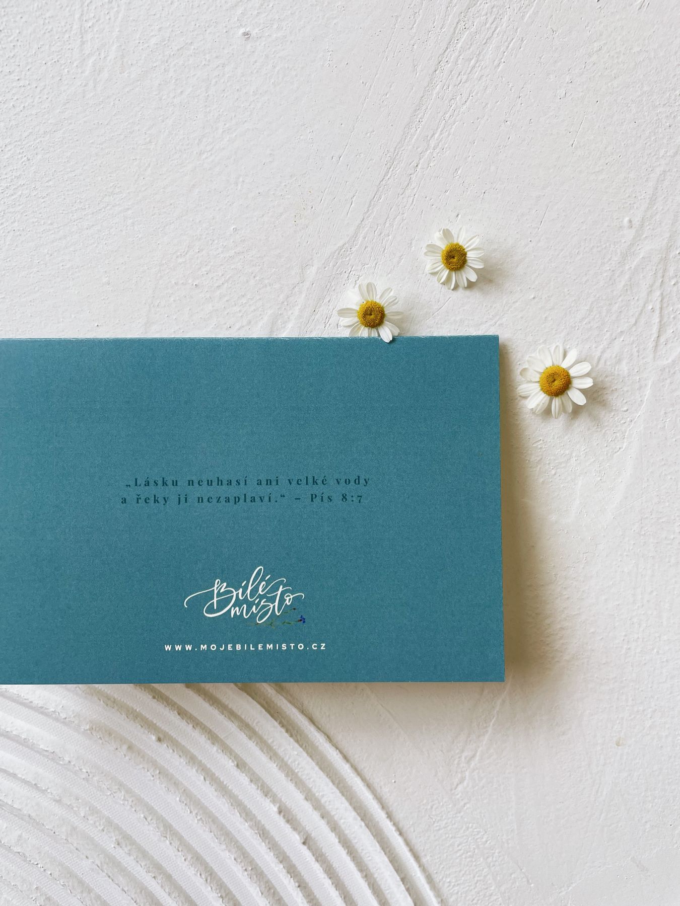 Křesťanské svatební přání novomanželům „Lásku neuhasí ani velké vody“ spojuje krásný design s vírou. Jeho úkolem je připomínat novomanželům krásu jejich manželství s Bohem uprostřed.